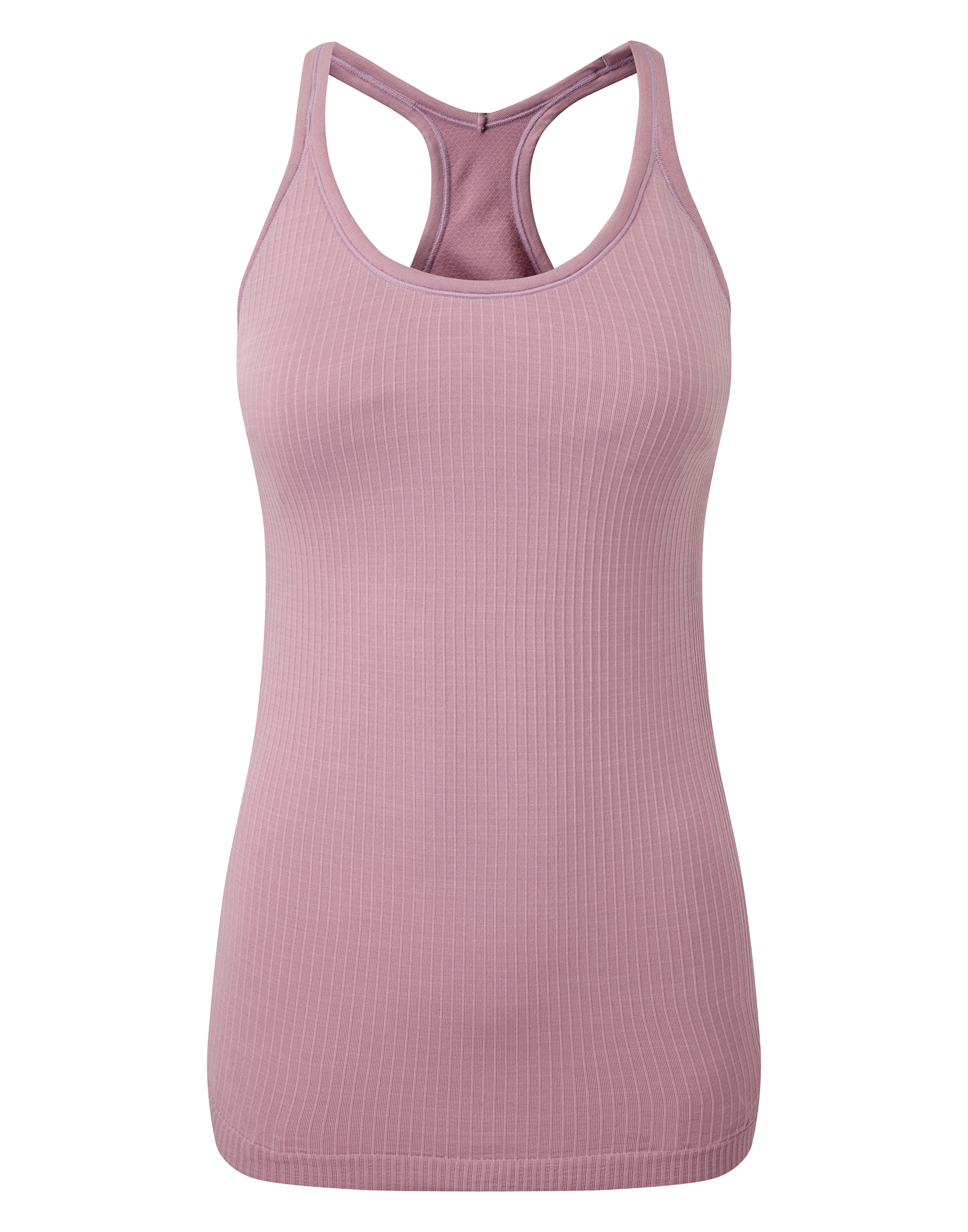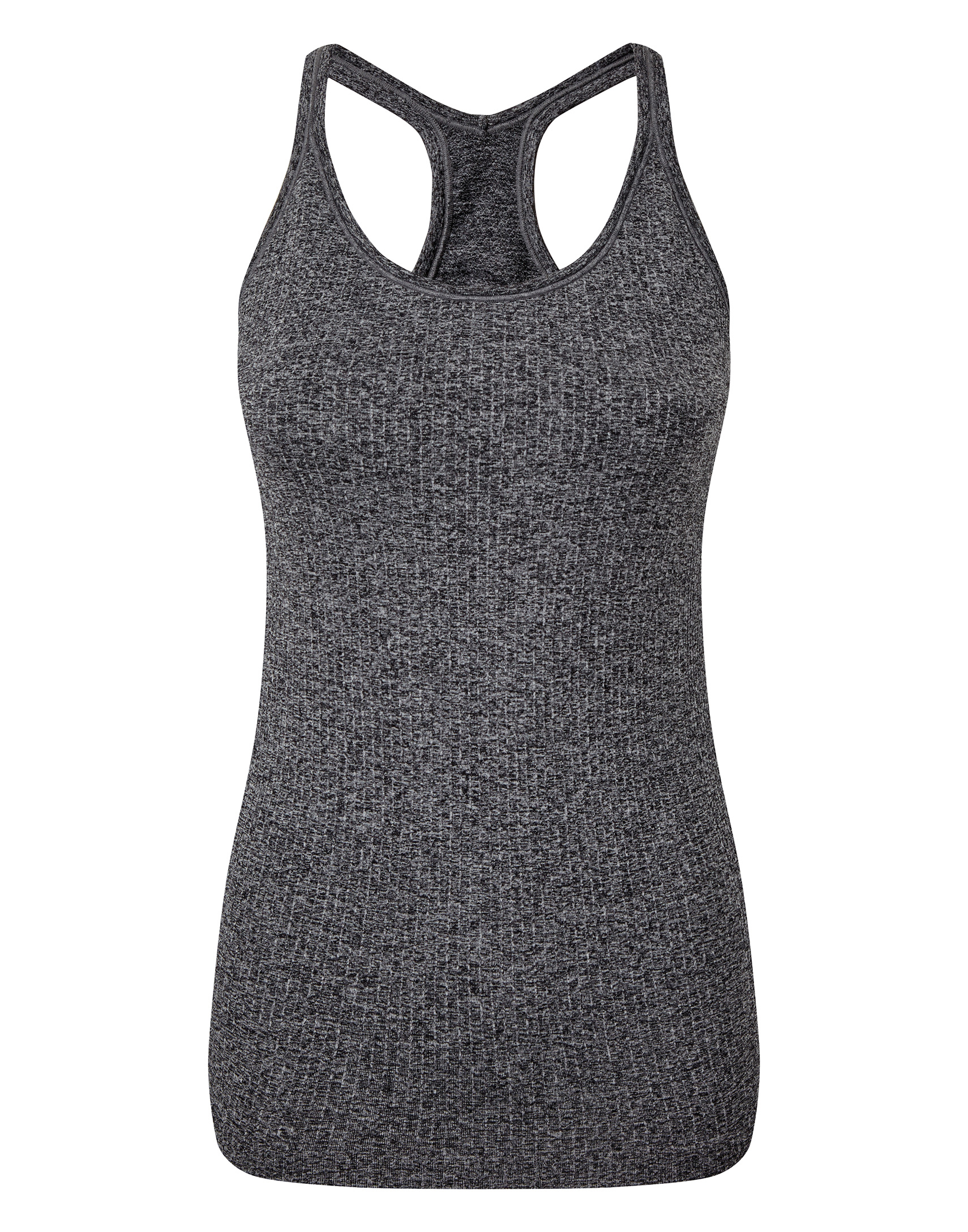 Seamless vest. Contrast detailing. Body sculpting design detailing. Racerback. Hidden sports bra inner with removable bra pads for additional support. Ribbed stretch fabric.