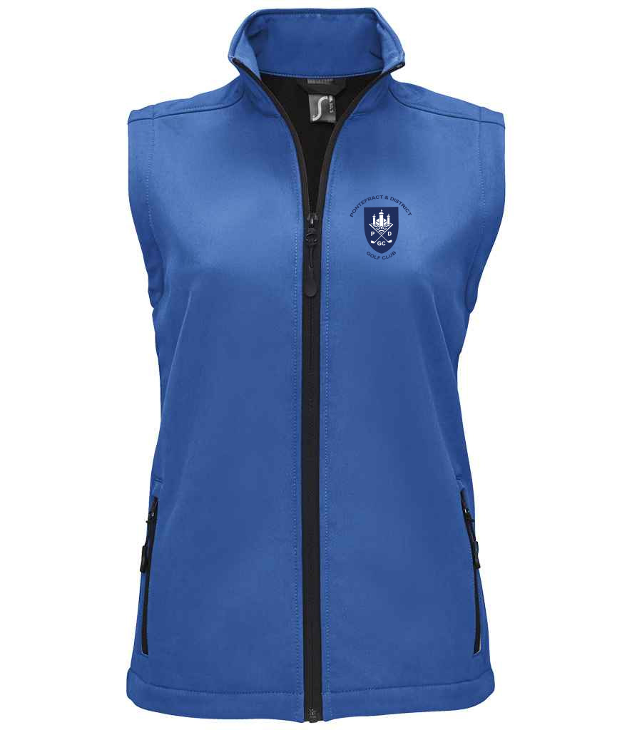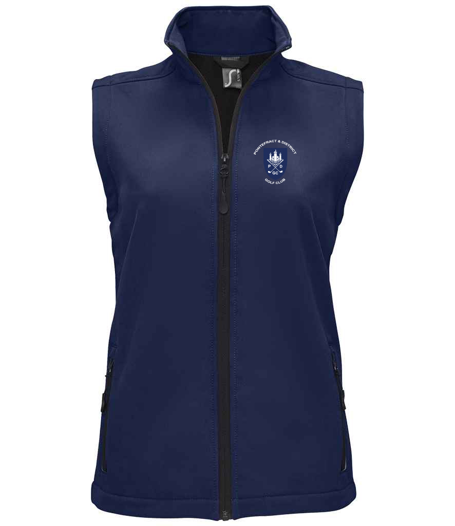 Ladies softshell bodywarmer with embroidered Pontefract & District Logo to left chest