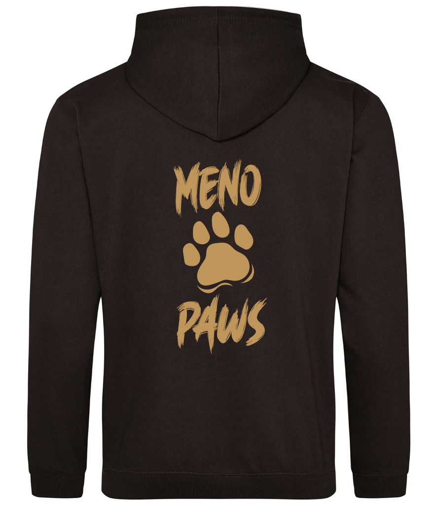 Black with small Castleford Tigers logo in gold printed to the left chest and a large MENO PAWS print to the back of the hoodie.