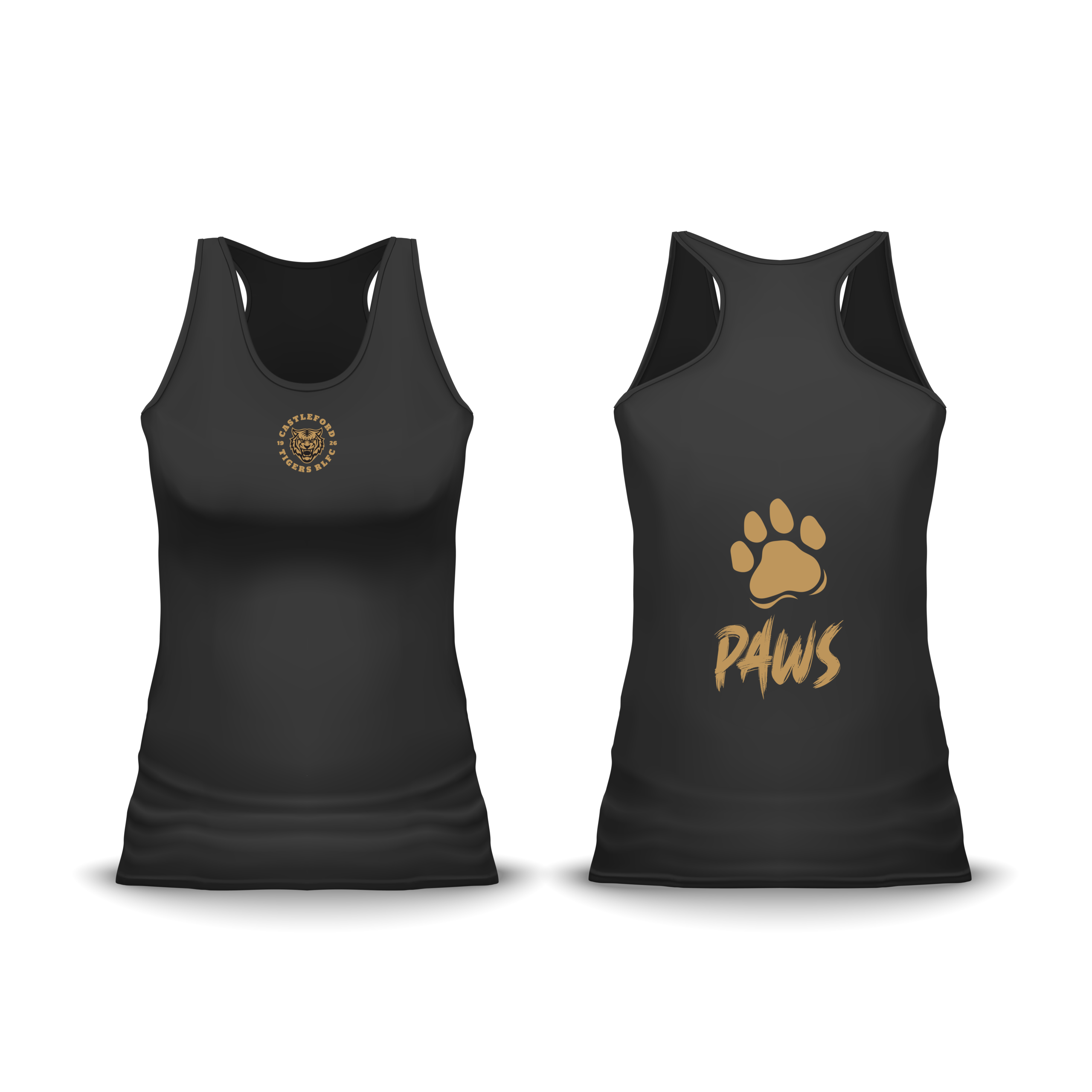 Racer back vest with Castleford Tigers PAWS branding AVAILABLE IN BOTH UNISEX ADULT AND KIDS SIZES
